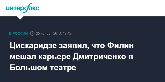 Москва. 25 ноября. INTERFAX.RU - Экс-премьер балета Большого театра Николай Цискаридзе заявил, что худрук балетной труппы ГАБТ Сергей Филин не хотел давать Павлу Дмитриченко ведущих ролей.