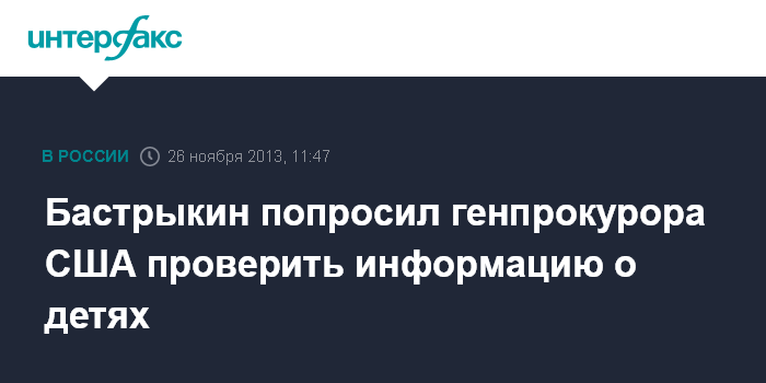"Александр Бастрыкин направил генпрокурору Соединенных Штатов Холдеру официальное письмо с просьбой о проведении проверки по фактам грубых нарушений прав 26 усыновленных российских детей, о которых было рассказано в рамках журналистского расследования агентства Reuters и телеканала NBC", - сообщил "Интерфаксу" официальный представитель СКР Владимир Маркин.