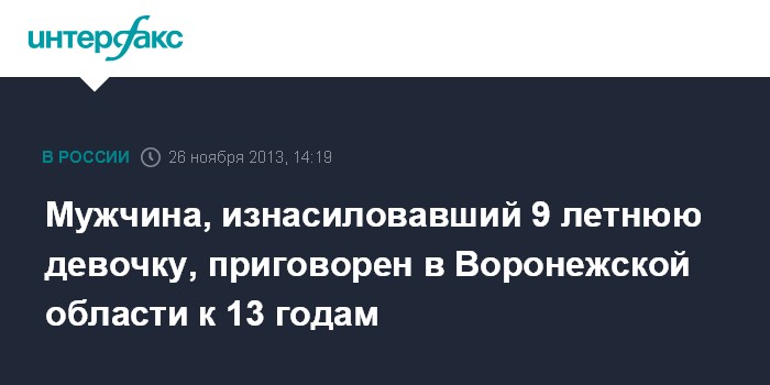Мужчина, изнасиловавший 9 летнюю девочку, приговорен в Воронежской области к 13 годам