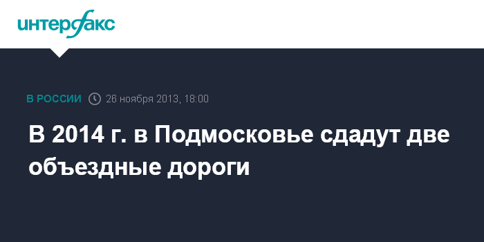 В 2014 г. в Подмосковье сдадут две объездные дороги