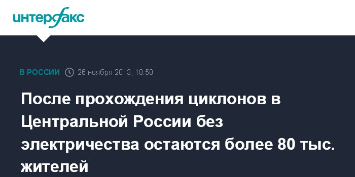 Ранее во вторник в результате прохождения циклонов, сопровождающихся сильным ветром и обильными осадками, в шести субъектах РФ было нарушено энергоснабжение в более чем 1600 пунктах с населением около 93 тыс. человек.