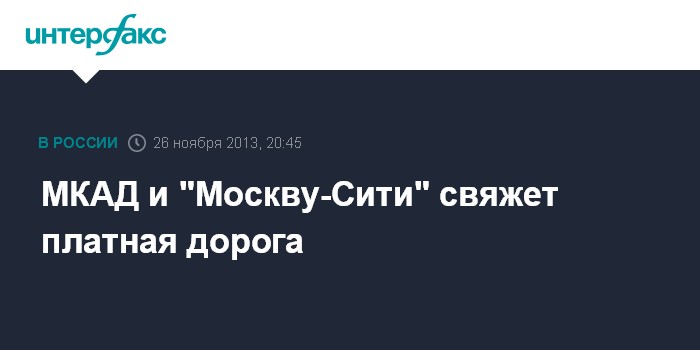 Москва. 26 ноября. INTERFAX.RU - Столичные власти в ближайшее время начнут поиск инвесторов для строительства платной автодороги, которая свяжет МКАД и ММДЦ "Москва-Сити", сообщил мэр Москвы Сергей Собянин в интервью каналу ТВЦ во вторник.