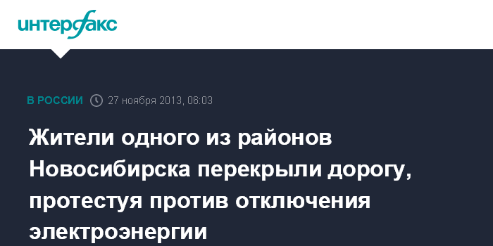 Новосибирск. 27 ноября. ИНТЕРФАКС-СИБИРЬ - Жителям отдаленного микрорайона Новосибирска восстановили подачу электроэнергии после того, как они перекрыли движение транспорта по одной из улиц Новосибирска, сообщает ГУ МВД России по региону.