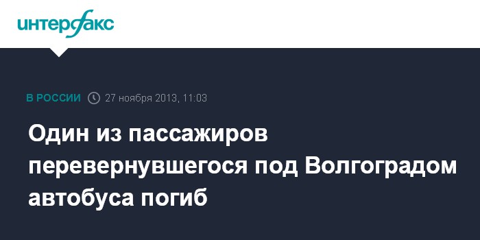 Волгоград. 27 ноября. INTERFAX.RU - По уточненным данным, один из пассажиров автобуса, перевернувшегося в Иловлинском районе Волгоградской области, погиб, еще восемь ранены, сообщает ГУВД региона.