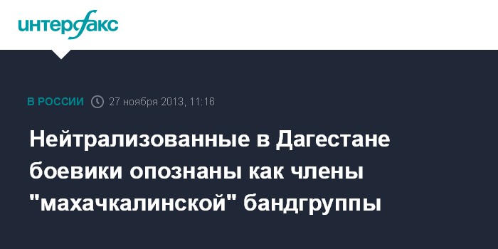 Москва. 27 ноября. INTERFAX.RU - Нейтрализованные в Дагестане в результате спецоперации трое боевиков являлись активными членами "махачкалинской" бандгруппы, говорится в сообщении Национального антитеррористического комитета, поступившем в "Интерфакс" в среду.