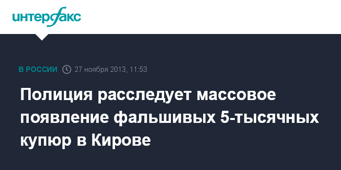 Киров. 27 ноября. INTERFAX.RU - Массовый сбыт поддельных пятитысячных денежных купюр через банкоматы и торговые точки зафиксирован в Кирове, сообщил агентству "Интерфакс-Поволжье" руководитель пресс-службы УМВД по Кировской области Сергей Баранцев в среду.