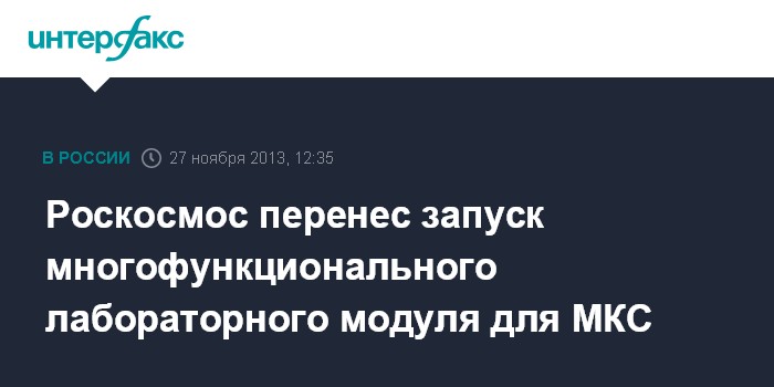 Звездный городок (Московская область). 27 ноября. INTERFAX.RU - Роскосмос принял официальное решение о переносе запуска многофункционального лабораторного модуля (МЛМ) для Международной космической станции (МКС) и возвращении его на доработку, сообщил начальник пилотируемых программ Роскосмоса Алексей Краснов.