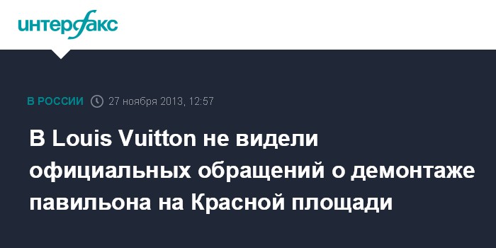 Париж. 27 ноября. INTERFAX.RU - Торговый дом Louis Vuitton пока не получал официальных обращений от представителей российских властей по поводу демонтажа павильона, установленного на Красной площади.