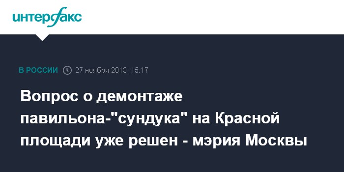 Вопрос о демонтаже павильона-"сундука" на Красной площади уже решен - мэрия Москвы