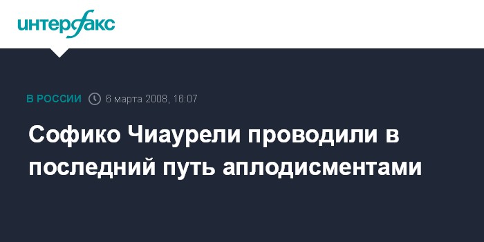 Тбилиси. 6 марта. INTERFAX.RU - Похороны известной грузинской актрисы Софико Чиаурели состоялись в четверг в Пантеоне выдающихся общественных деятелей Грузии в Тбилиси, сообщает агентство "Интерфакс".