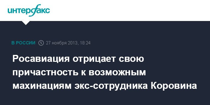 Москва. 27 ноября. INTERFAX.RU - Росавиация опровергает появившуюся в СМИ информацию о якобы причастности ведомства к возможным махинациям бывшего замначальника отдела Сергея Коровина.