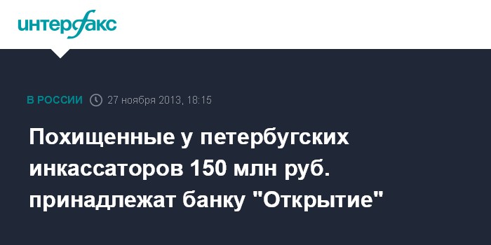 Санкт-Петербург. 27 ноября. INTERFAX.RU - Средства, похищенные в результате ограбления инкассаторов в Петербурге, принадлежат ОАО "Банк "Открытие", сообщили "Интерфаксу" в пресс-службе банка.