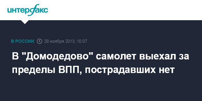 В "Домодедово" самолет выехал за пределы ВПП, пострадавших нет