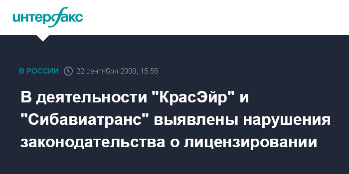 Москва. 22 сентября. INTERFAX.RU - Западно-сибирская транспортная прокуратура выявила нарушения законодательства о лицензировании в деятельности авиакомпании ОАО "Красэйр" и ОАО "Сибавиатранс".