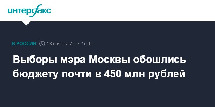 Выборы мэра Москвы обошлись бюджету почти в 450 млн рублей