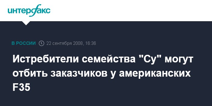 Москва. 22 сентября. INTERFAX.RU - Итоги смоделированных воздушных боев между новейшим американским истребителем 5-го поколения F35 и самолетами марки "Су" могут привести к обострению конкурентной борьбы на мировом рынке истребителей, сообщают зарубежные СМИ. В частности, как пишет австралийская пресса, возможен срыв контракта между Вашингтоном и Сиднеем стоимостью 16 миллиардов долларов на закупку сотни самолетов F35. Об этом "Интерфаксу-АВН" сообщил источник в российском оборонно-промышленном комплексе.