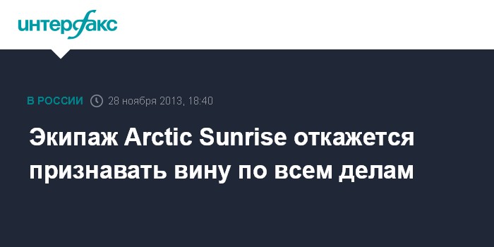 Санкт-Петербург. 28 ноября. INTERFAX.RU - Члены экипажа судна Arctis Sunrise, задержанные во время акции Greenpeace в Печорском море 19 сентября, не намерены признавать вину и в случае изменения статьи обвинения с уголовной на административную.