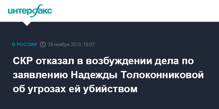 СКР отказал в возбуждении дела по заявлению Надежды Толоконниковой об угрозах ей убийством