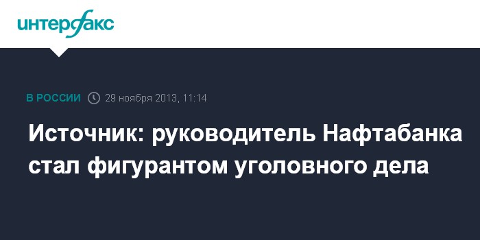 Москва. 29 ноября. INTERFAX.RU - Уголовное дело возбуждено в отношении одного из руководителей Нафтабанка (Махачкала, Дагестан), сообщил "Интерфаксу" источник в правоохранительных органах.