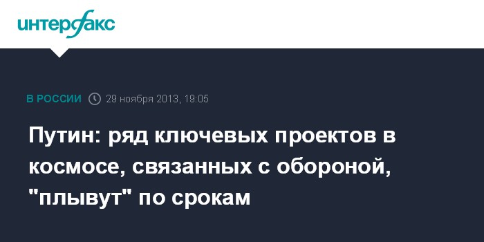 "Несмотря на стабильное финансирование, ряд ключевых проектов "плывут" по срокам, в том числе и связанные с обеспечением обороноспособности страны", - заявил Путин на совещании по вопросам развития орбитальной группировки космических аппаратов военного и двойного назначения.