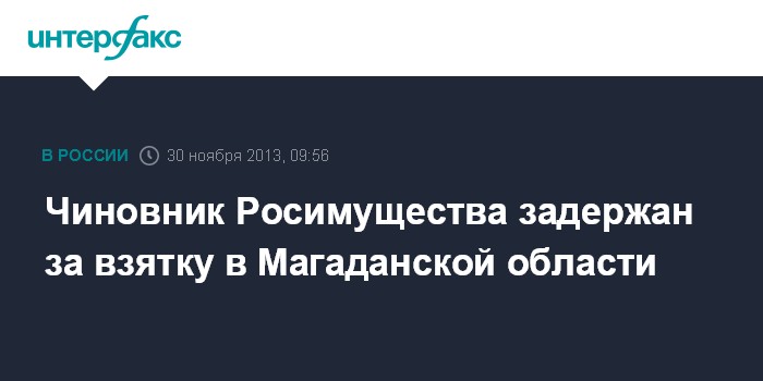 Чиновник Росимущества задержан за взятку в Магаданской области