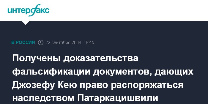 Получены доказательства фальсификации документов, дающих Джозефу Кею право распоряжаться наследством Патаркацишвили