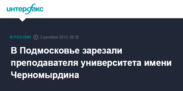 В Подмосковье зарезали преподавателя университета имени Черномырдина