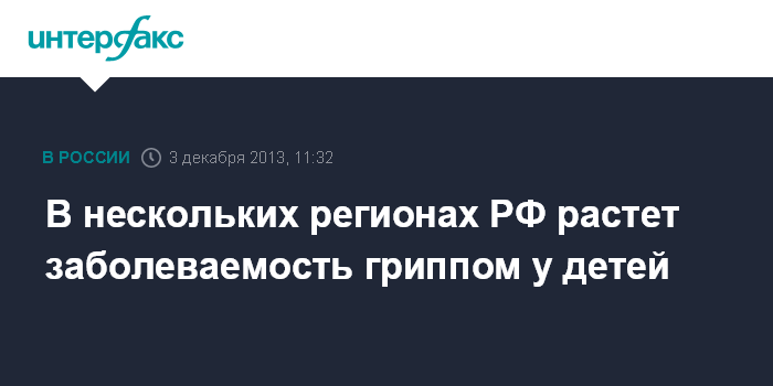 Москва. 3 декабря. INTERFAX.RU - В ряде российских регионов идет подъем заболеваемости гриппом и ОРВИ среди детей, сообщили "Интерфаксу" во вторник в Роспотребнадзоре.