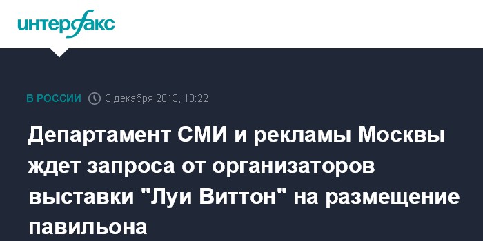 Департамент СМИ и рекламы Москвы ждет запроса от организаторов выставки "Луи Виттон" на размещение павильона