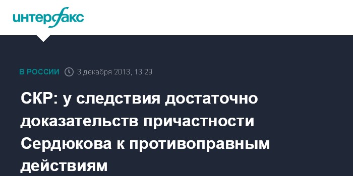 СКР: у следствия достаточно доказательств причастности Сердюкова к противоправным действиям