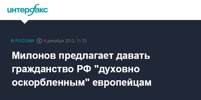 Санкт-Петербург. 4 декабря. INTERFAX.RU - Председатель комитета по законодательству Законодательного собрания Петербурга Виталий Милонов направил обращение в МИД и ФМС России, в котором предлагает упростить получение российского гражданства для иностранцев, которых духовно и культурно оскорбили в их стране.