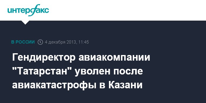 Гендиректор авиакомпании "Татарстан" уволен после авиакатастрофы в Казани