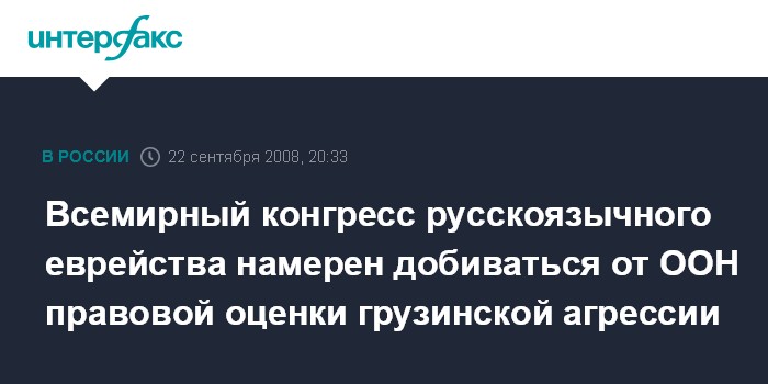 Всемирный конгресс русскоязычного еврейства намерен добиваться от ООН правовой оценки грузинской агрессии