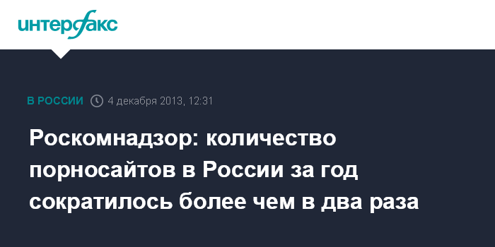 Москва. 4 декабря. INTERFAX.RU - За год действия закона о защите детей от вредной информации в России стало в два раза меньше сайтов с так называемым взрослым контентом", заявил руководитель Роскомнадзора Александр Жаров.