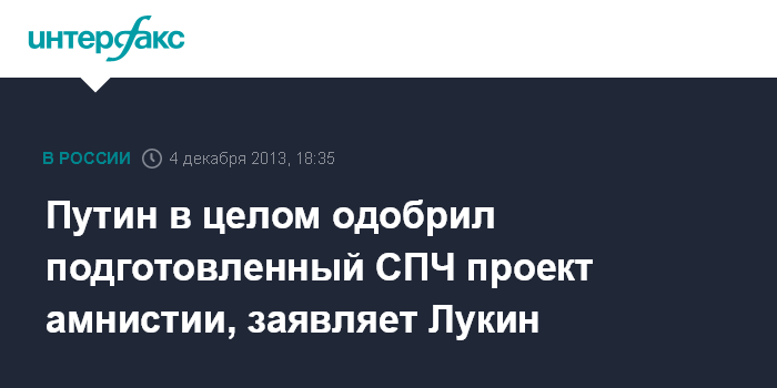 "Проект, который был представлен президенту Советом по правам человека, - это проект широкой амнистии, и президент его в целом одобрил", - сказал Лукин.