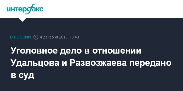 Уголовное дело в отношении Удальцова и Развозжаева передано в суд