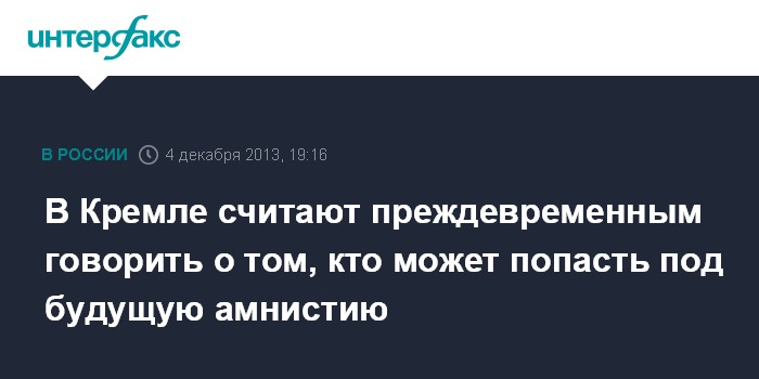 "Чрезвычайно преждевременно говорить о том, что амнистия будет распространяться на те или иные конкретные фамилии, на тех или иных конкретных лиц, в настоящий момент так говорить опрометчиво и неверно", - заявил Песков журналистам в среду.