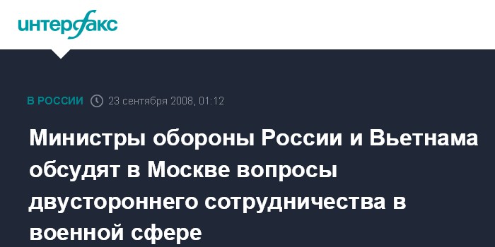 Министры обороны России и Вьетнама обсудят в Москве вопросы двустороннего сотрудничества в военной сфере