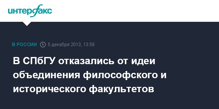 Санкт-Петербург. 5 декабря. INTERFAX.RU - Исторический и философский факультеты Санкт-Петербургского государственного университета не будут объединять в институт истории и философии, сообщили "Интерфаксу" в пресс-службе вуза.