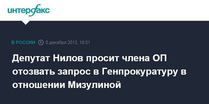 Депутат Нилов просит члена ОП отозвать запрос в Генпрокуратуру в отношении Мизулиной