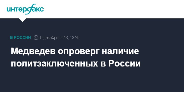 Москва. 6 декабря. INTERFAX.RU - Премьер-министр РФ Дмитрий Медведев убежден, что в России нет политических заключенных.