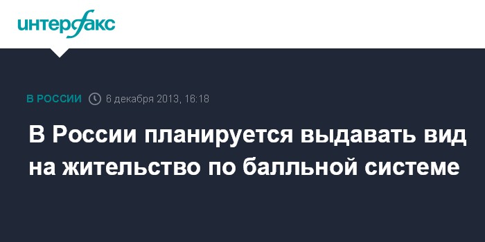 "Те, кто намерен вступить в российское гражданство и связать свою жизнь с нашей страной, будут получать вид на жительство по балльной системе. Она будет учитывать владение русским языком, основами права и культуры, наличие определенного уровня образования, спрос на профессию", - заявил глава ФМС.