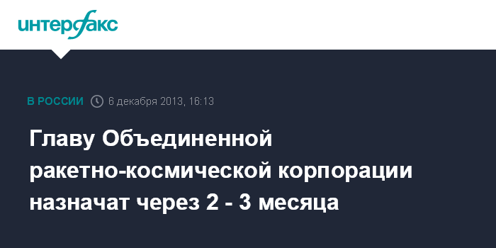Главу Объединенной ракетно-космической корпорации назначат через 2 - 3 месяца