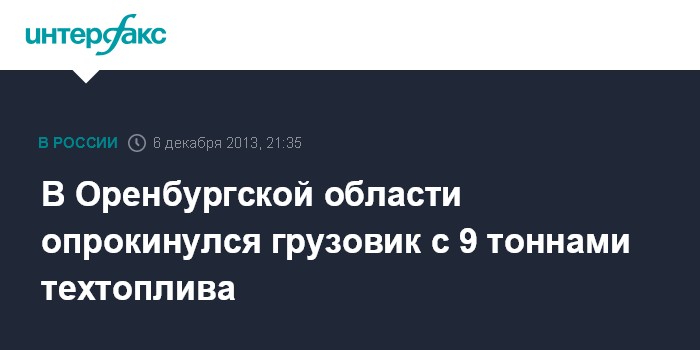 Москва. 6 декабря. INTERFAX.RU - Авария с участием КАМАЗа, перевозившего 9 тонн технического бензина, произошла на трассе Бугульма-Уральск в Оренбургской области.