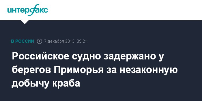 Российское судно задержано у берегов Приморья за незаконную добычу краба