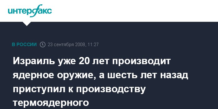Израиль уже 20 лет производит ядерное оружие, а шесть лет назад приступил к производству термоядерного