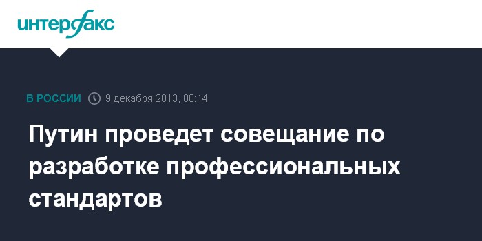 Москва. 9 декабря. INTERFAX.RU - Президент России Владимир Путин в понедельник проведет совещание по вопросу разработки профессиональных стандартов.