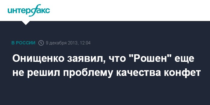 Москва. 9 декабря. INTERFAX.RU - Возвращение продукции украинской компании "Рошен" на рынок РФ зависит от того, насколько быстро производитель наведет порядок с качеством в соответствии с российскими требованиями, заявил помощник премьер-министра РФ Геннадий Онищенко.