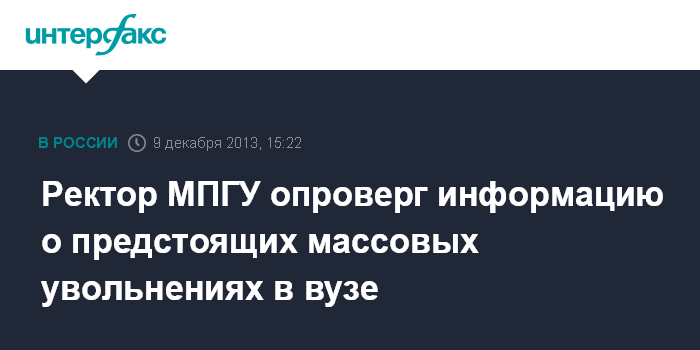 Москва. 9 декабря. INTERFAX.RU - Руководство Московского педагогического государственного университета (МПГУ) опровергает информацию о планирующихся массовых увольнениях сотрудников МПГУ в рамках реорганизации.