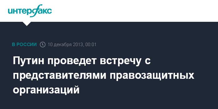Москва. 10 декабря. INTERFAX.RU - Президент России Владимир Путин встретится во вторник с российскими правозащитниками - представителями около 20 общественных и некоммерческих правозащитных организаций, а также уполномоченными по правам человека из всех федеральных округов, сообщает пресс-служба Кремля.